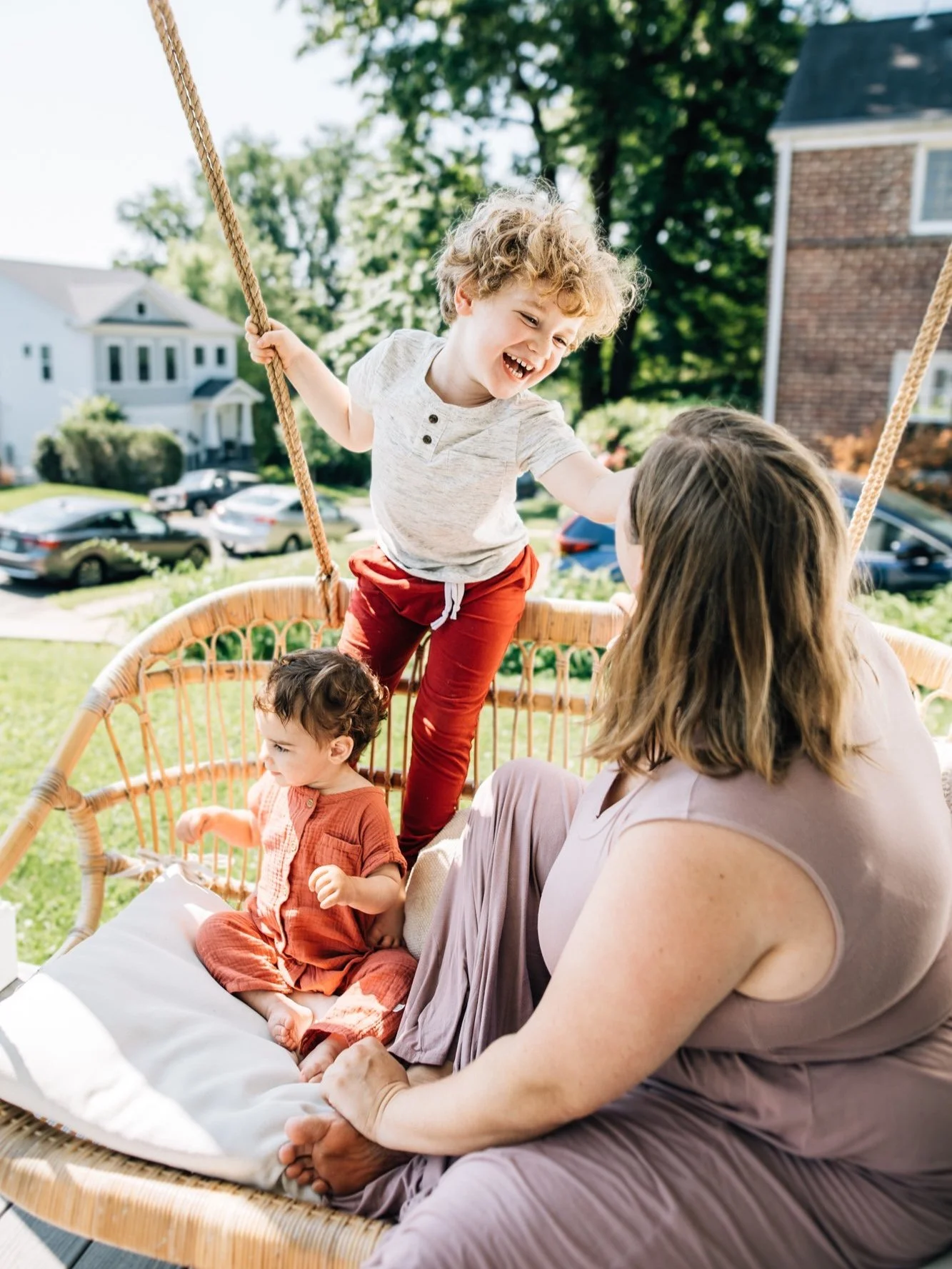 A solo mom with 3 active kids? Yes, please. After “behaving” for a while, the siblings needed a bit more action and started playing tag. Instead of running after them, I decided to embrace those minutes of high energy and slow down (myself and my shutter speed!). I usually match the family dynamic but when it becomes busier, I become quieter to focus on all that is happening around me.