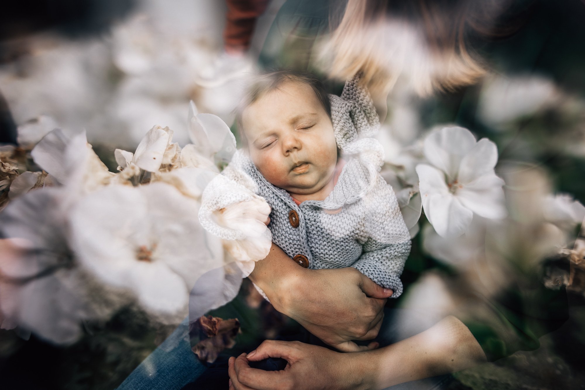 I had a blast this year experimenting with different techniques after a workshop I took in April. Also, I changed my camera a year ago (I got a Canon mirrorless R6) and NOW I can make double exposure images! Ah, soooo good! It’s definitely easier with non-moving targets like babies but I’ll keep trying with toddlers too. Other techniques I like to play with: free-lensing (when you detach the lens from the camera body) and prisming (using prisms to play with light).
